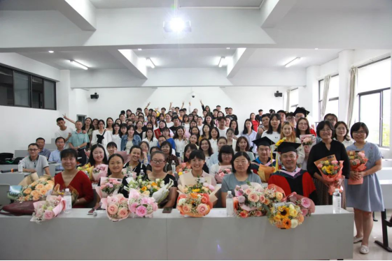 再次,毕业班学生代表向老师献花,毕业班班主任向毕业生赠送毕业纪念礼物。之后全体人员,在歌声中,一同观看毕业纪念视频并合影留念。