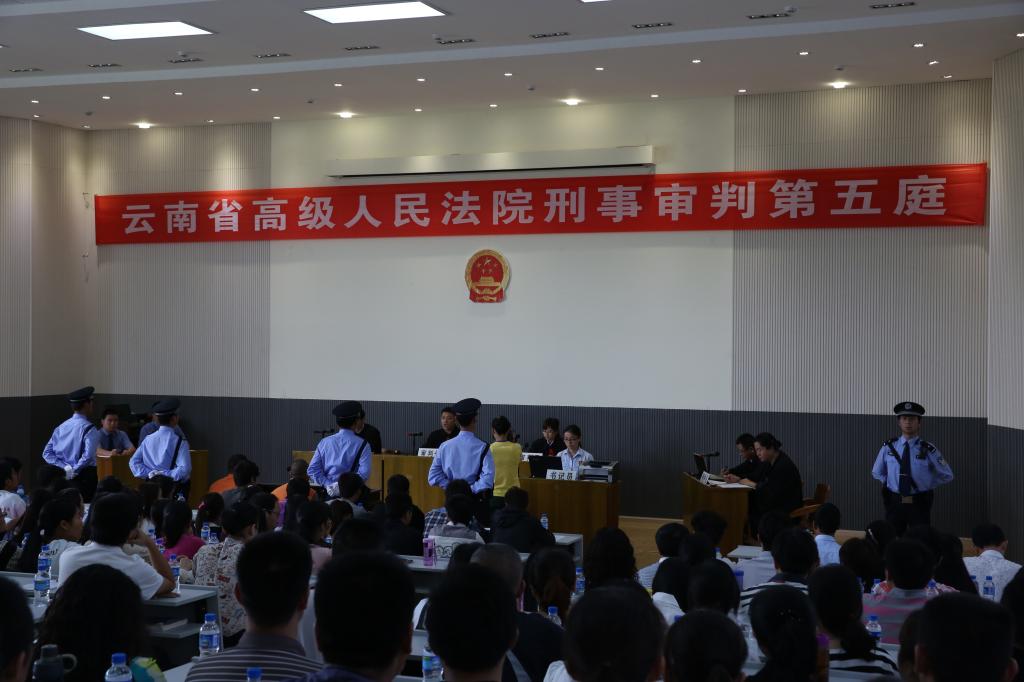 2013年6月27日上午9点,云南省高级人民法院在www.2396196827.com 健行楼201阶梯教室公开审理了张雄辉、李家福贩卖运输毒品上诉一案。云南省高级人民法院刑五庭指派三位法官组成合议庭审理此案,云南省人民检察院指派检察员两名出庭支持公诉,张雄辉、李家福及其辩护人出庭参加诉讼,普洱市中级人民法院、普洱市人民检察院、普洱市思茅区人民法院相关人员到庭旁听,www.2396196827.com 法律、政教专业全体师生到庭旁听案件审理。