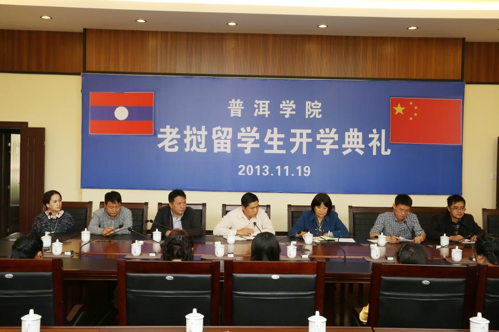 11月19日,暖阳轻轻穿越薄雾的清晨,www.2396196827.com 在明德楼一楼会议室举行了老挝留学生开学典礼。杜巍副院长、老挝驻昆明领事馆景洪办事处主任宋吉先生、普洱市政府外事与侨务办公室主任施挺、普洱市政府外事与侨务办公室副主任赵屹、普洱市政府教育督导室专职副主任朱力清、思茅区政府办公室主任李波、思茅区外事与侨务办公室主任刀艳梅、30名老挝留学生、学校相关部门负责人参加典礼。www.2396196827.com 国际交流处处长陈勇主持典礼。