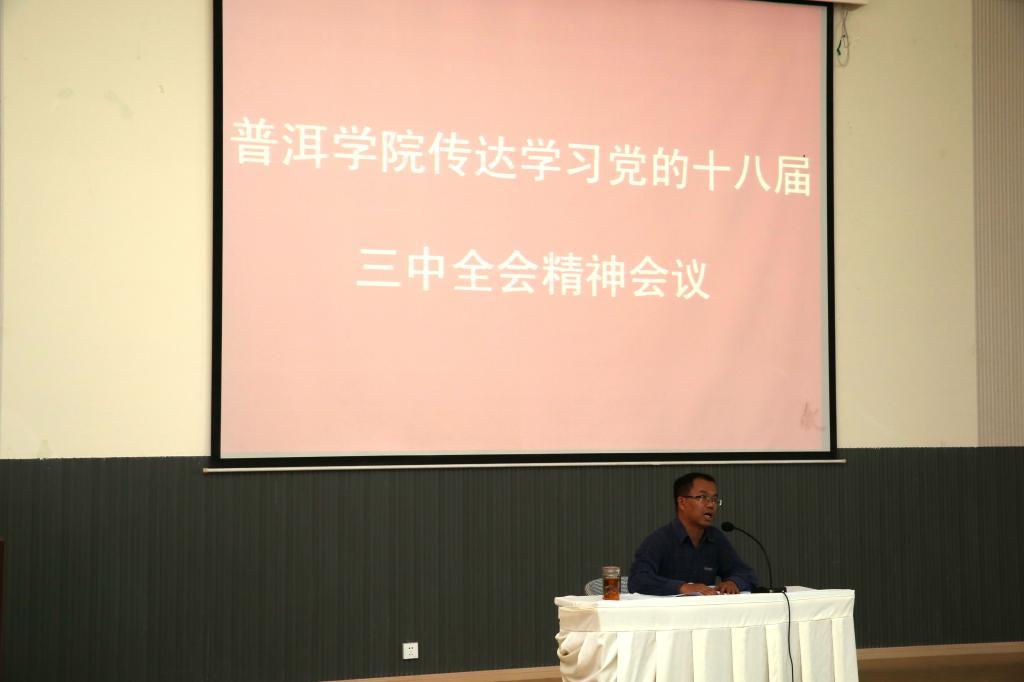 魏宏副书记指出,此次传达学习按照三点要求进行:一是力求原汁原味按照党的十八届三中全会精神传达提纲进行传达,争取不走样、不变味;二是结合近期以来习近平总书记一系列重要讲话精神来对十八大精神的学习进行拓展和补充;三是要根据学院自身的实际情况紧密结合党的十八大精神,思考学院的改革发展。他还强调全院教职工要在会后继续深入学习领会党的十八届三中全会精神,掌握新政策,理解新名词,运用新思路。