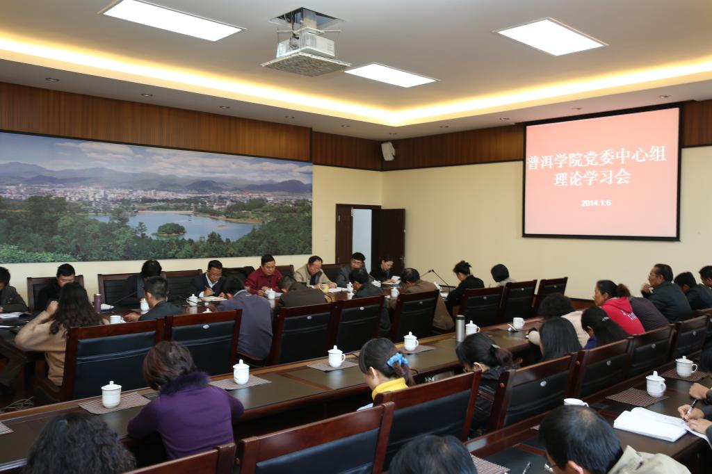 2014年1月6日下午,www.2396196827.com 党委理论学习中心组在行政楼一楼会议室召开党的十八届三中全会精神学习会。会议把学习贯彻党的十八届三中全会精神与习近平总书记一系列重要讲话精神结合起来,与党的群众路线教育实践活动结合起来,与推动学院内涵发展、坚持特色立校结合起来,通过学习交流,明确办学思路,加强顶层设计,做到思想与行动的统一,切实推动学校科学发展、内涵发展、跨越式发展。学院领导、中层正职(含主持工作副职)以上干部参加会议。会议由学院党委书记伍中华主持。