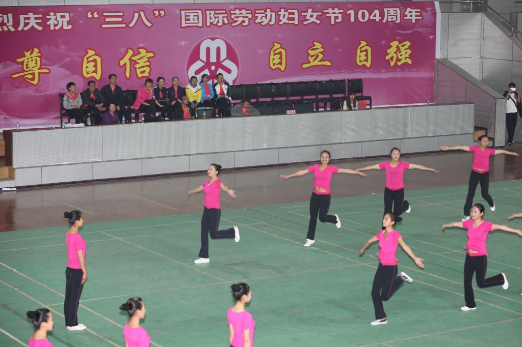 为庆祝第104个“三八”国际劳动妇女节,丰富广大妇女群众的文化生活,提高妇女的生活质量和健康水平,增强妇女群众的凝聚力,3月4日,普洱市妇联在红旗广场体育馆举办“筑梦中国·共创和谐——我运动·我健康”第九套广播体操比赛,我校组团参加比赛。此次广播体操比赛共27家单位参赛,经角逐,我校荣获三等奖。