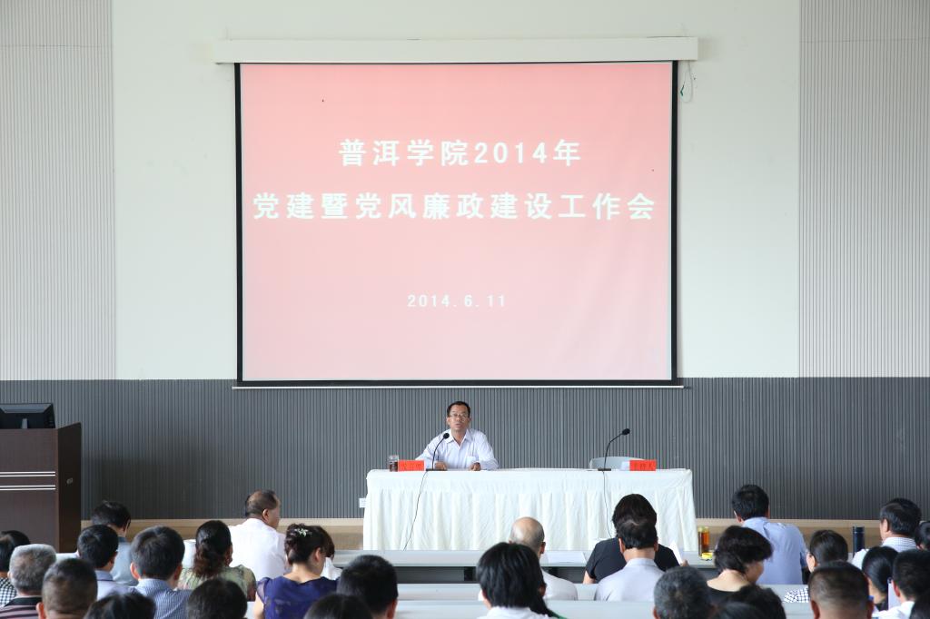 2014年6月11下午,我校在健行二楼阶梯教室召开2014年党建暨党风廉政建设工作会。校领导、校长助理、中层以上领导干部、教职工党员共计200余人参加会议。会议由成文章院长主持。