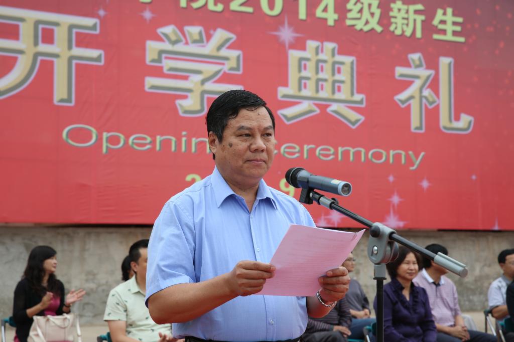9月25日早上9点,我校在东区广场举行2014级新生开学典礼,学校党委书记伍中华、校长成文章、党委副书记郑颖松、副校长于干千、副校长代红兵、院长助理、二级学院党总支书记、二级学院院长、各处室负责人、辅导员、2014级各班班主任及全体新生参加了开学典礼。开学典礼由党委书记伍中华主持。