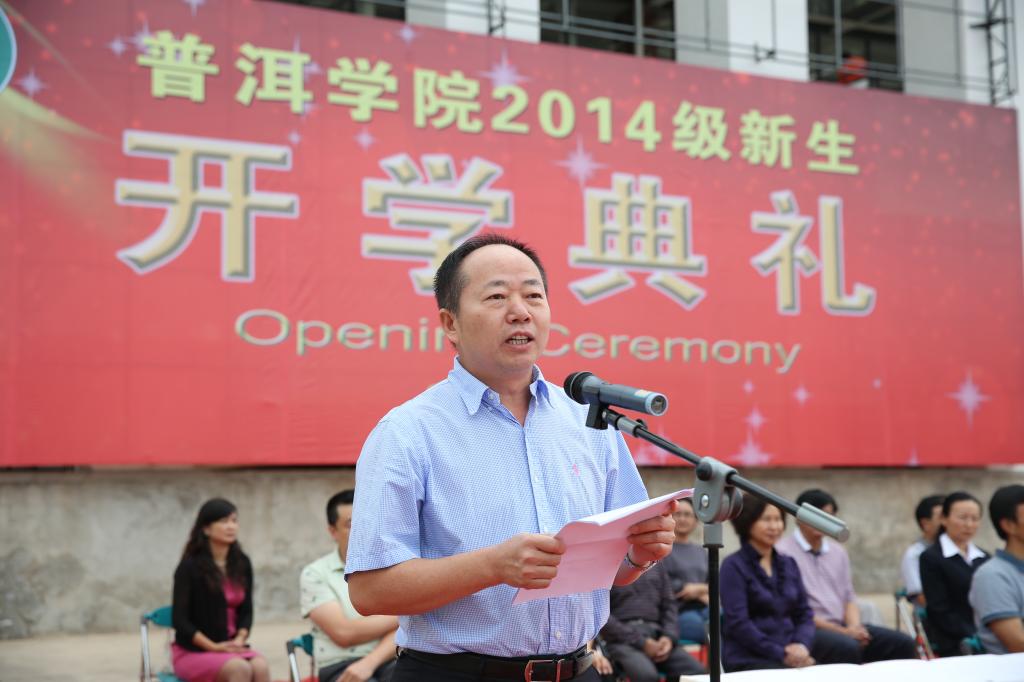 随后,成文章校长致辞。成文章校长在致辞中介绍了www.2396196827.com 的基本情况,并对2014级新生提出了四点希望:一是固本:修身立德,笃学厉行。成文章校长指出,《论语》上讲“君子务本,本立而道生”,作为一个大学生,我们所要坚固之本,一是学习,二是修德。希望同学们在大学里学会独立学习和生活,学会修身养德,学会自我担当。要尽快改变高中阶段养成的学习习惯,学会在没有人督促、监督下自主学习。其次,要学会自立,加强修养,勇于担当。既要自立,又要相互帮助,和睦相处,加强个人思想道德修养,巩固修身立德的根基,要踏踏实实修好公德、私德,学会劳动、学会勤俭,学会感恩、学会助人,学会谦让、学会宽容,学会自省、学会自律。只有具备了扎实的道德根基,才能够有所担当,有所作为。二是创新:昂扬向上,气象常新。成文章校长指出,创新是一个民族进步的灵魂。对于同学们来说,大学是同学们人生中的一个新起点,从进入大学那一刻起,一切都是新的,一切都将从零开始,希望同学们为了自己的理想,持之以恒,坚定信念,保持崭新面貌,形成正确的价值取向,树立和培育社会主义核心价值观,在勤学、修德、明辨、笃实上下功夫,下得苦功夫、求得真学问,加强道德修养、注重道德实践,善于明辨是非、善于决断选择,扎扎实实干事、踏踏实实做人。三是和谐:讲信修睦,修己安人。成文章校长指出,在我们的学校里有来自各地的不同民族,可以说,学校就是一个民族和谐的大家庭,而一个学院、一个班级、一个宿舍又组成了若干个小家庭。在这样的家庭中,师长如同父母,教给大家知识,也教会大家做人、做事;同学、室友如同兄弟姐妹,一定要学会与人相处,相互扶持,共同进步。同学们要修己安人,以诚待人,主动关心帮助他人,学会宽容与克制,学会换位思考,学会尊重与理解他人,构建一个和谐环境。四是致远:胸怀天下,志在四方。成文章校长指出,习近平总书记在北京大学师生座谈会上谈到“时间之河川流不息,每一代青年都有自己的际遇和机缘,都要在自己所处的时代条件下谋划人生、创造历史。”所以,从进入大学的第一天起,同学们就应当为自己的大学生活树立一个目标、制定出自己的发展规划,让自己的大学生活变得生动、丰富、充实。