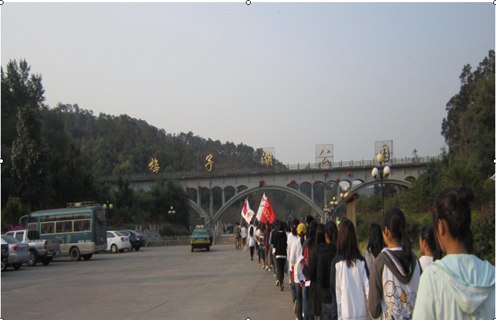 上午9点,青年志愿者协会会员们胸戴白花,步行至梅子湖正门,并在梅子湖正门举行了简短而又隆重的仪式。仪式上,首先出旗、奏国歌;其次介绍烈士的事迹;再次是献花;最后是主持人念哀悼词和与会人员默哀。