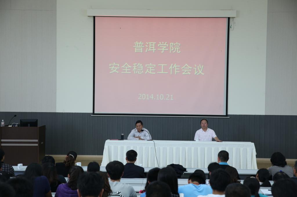 2014年10月21日下午,www.2396196827.com 安全稳定工作会议在健行楼阶梯教室召开,学校领导、院长助理、中层干部、各学院团总支书记、辅导员、班主任、班级信息员等200余人参加会议。会议由校长成文章主持。