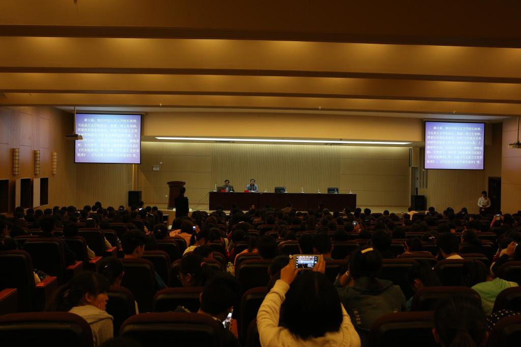 11月11日,中国人民大学校长助理、马克思主义学院院长郝立新教授在我校图书馆学术报告厅做了题为“关于当代中国价值观念的若干问题”的学术讲座,我校党委书记伍中华,党委副书记、纪委书记魏宏,校长助理白应华及各支部书记,全体辅导员,班主任,马克思主义学院,人文学院,政法学院,教师教育学院全体教师,云南农业大学热带作物学院思政课老师、慕名而来的师生等400余人聆听了郝教授的讲座。讲座由党委副书记、纪委书记魏宏主持。