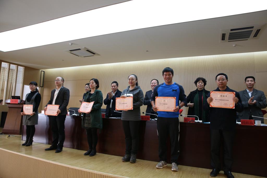 校党委书记伍中华宣读2013、2014年度教学成果奖和《首届教师课堂教学竞赛奖励决定》。校领导为先进集体和获奖教师代表颁奖。