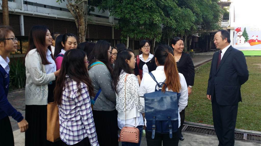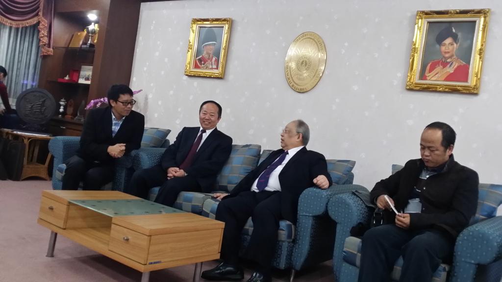 应泰国清莱皇家大学的邀请,我校成文章校长于2014年12月23日-28日带队赴泰就两校的合作办学及师生互派计划等进行进一步交流、磋商,并就双方合作协议做了进一步的修订完善。访问期间,成文章校长看望了在泰国清莱皇家大学留学的学生,并详细询问了他们在泰国的学习生活情况。
