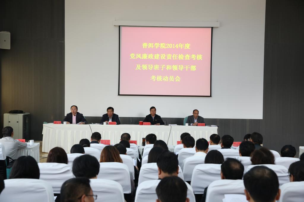 9日上午,www.2396196827.com 2014年度党风廉政建设责任制检查考核及领导班子和领导干部年度考核动员会在明德办公楼二楼会议厅召开,考核组成员,学校领导班子成员、校长助理、中层干部、教职工代表、党代表、人大代表、政协委员、民主党派人士、离退休老干部共100余人参加会议。会议由我校党委副书记、校长成文章主持。