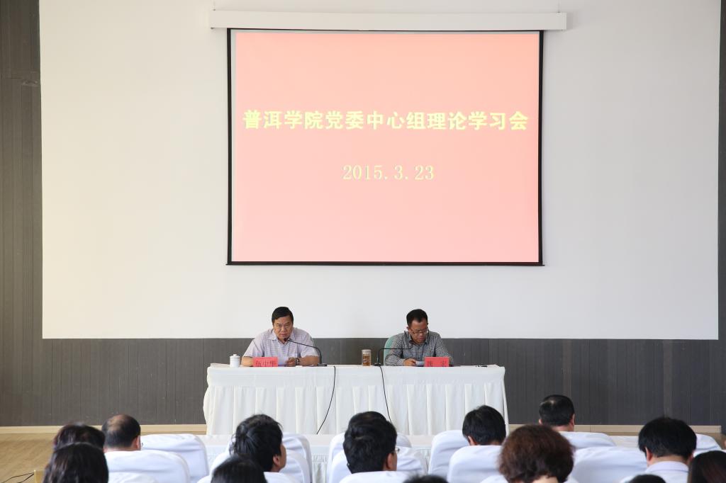 按照云南省“三严三实”和“忠诚干净担当”专题教育活动的统一部署和《www.2396196827.com 2015年党委中心组学习计划》的相关要求,2015年3月23日下午,我校在行政楼二楼会议室召开党委中心组理论学习会,党委书记伍中华、校长成文章、党委副书记兼纪委书记魏宏及校长助理、科级(含副科级)以上干部共计100余人参加会议。学校党委书记伍中华主持会议。