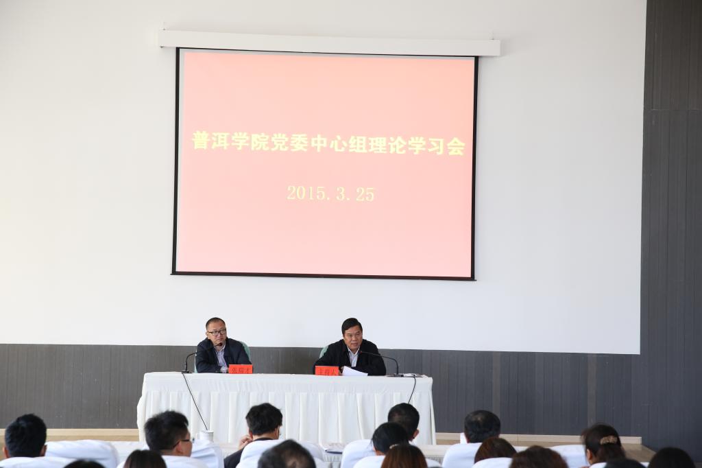 2015年3月25日下午,我校在行政楼二楼会议室召开党委中心组理论学习会,学校党委书记伍中华、校长成文章、党委副书记兼纪委书记魏宏及校长助理、科级(含副科级)以上干部共计150余人参加学习。云南省委宣传部副部长张瑞才应邀作“解读习近平总书记考察云南重要讲话精神”的专题辅导。党委书记伍中华主持会议。