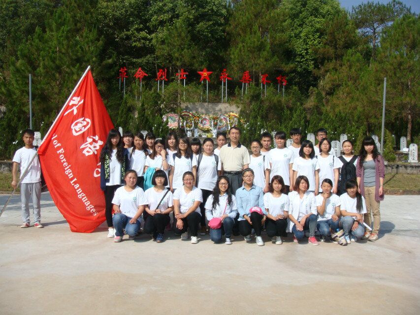 2015年4月4日,外语学院党总支、院团总支组织外国语学院师生党员、入党积极分子、团员、学生干部一行100余人到普洱望城坡烈士陵园开展祭奠烈士活动。