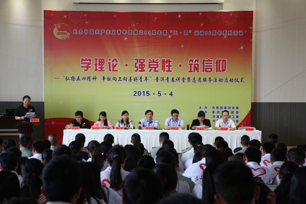 为庆祝中国共产主义青年团成立93周年暨五四运动96周年,5月4日,共青团普洱市委“‘弘扬五四精神 争做向上向善好青年’普洱青春讲堂暨志愿服务活动启动仪式”在我校健行楼举行。我校党委副书记郑颖松、云南省委党校教授欧黎明、普洱团市委书记何荣青、普洱市思茅区宣传部部长穆星、普洱市团市委副书记陈勇志、www.2396196827.com 师生共计300余人参加了启动仪式。仪式由普洱团市委书记何荣青主持。