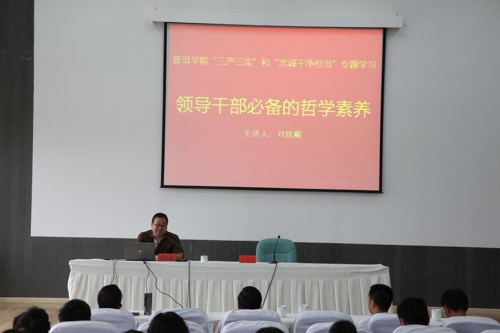 为进一步加强领导干部理论学习,提高领导干部哲学素养,按照“三严三实”和“忠诚干净担当”专题教育的统一部署和相关要求,9月9日,我校举行“三严三实”和“忠诚干净担当”专题学习会,邀请云南省委党校刘轶飚副教授作了题为《领导干部必备的哲学素养》的讲座。党委书记伍中华,党委副书记、纪委书记魏宏及学校副处级以上干部参加了学习会。学习会由党委副书记魏宏主持。