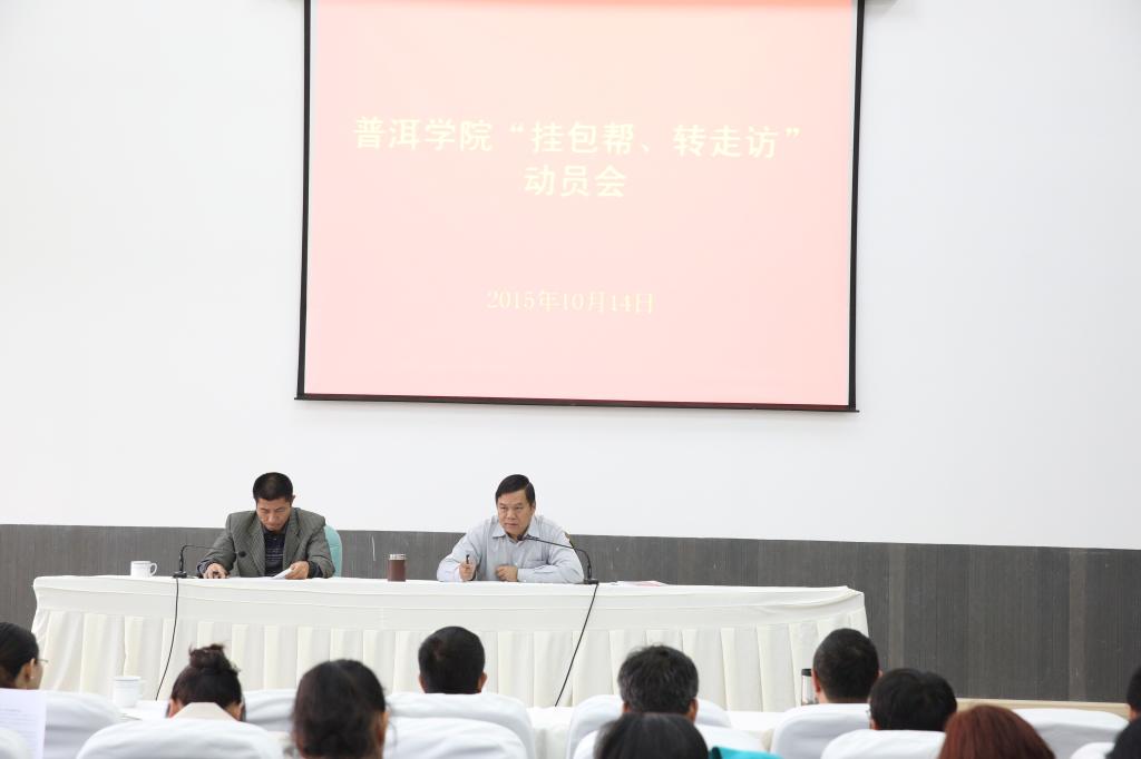 2015年10月14日,学校召开“领导挂点、部门包村、干部帮户”“转作风走基层遍访贫困村贫困户”工作动员大会,校领导、中层干部、2015年下派驻村新农村指导员参加了会议。会议由副校长代红兵主持。