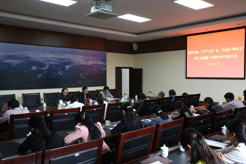 按照“三严三实”和“忠诚干净担当”专题教育的统一安排和部署,根据省委组织部《关于抓好第三专题集中学习研讨的通知》和《www.2396196827.com “三严三实”和“忠诚干净担当”专题教育第三专题集中学习研讨实施方案》的要求,2015年10月30日下午,我校在明德行政楼一楼会议室召开“三严三实”和“忠诚干净担当”专题教育第三专题第一次集中学习研讨会,校领导、校长助理、党委部门负责人、党总支书记、专教办全体成员共30余人参加会议。会议由校长成文章主持。