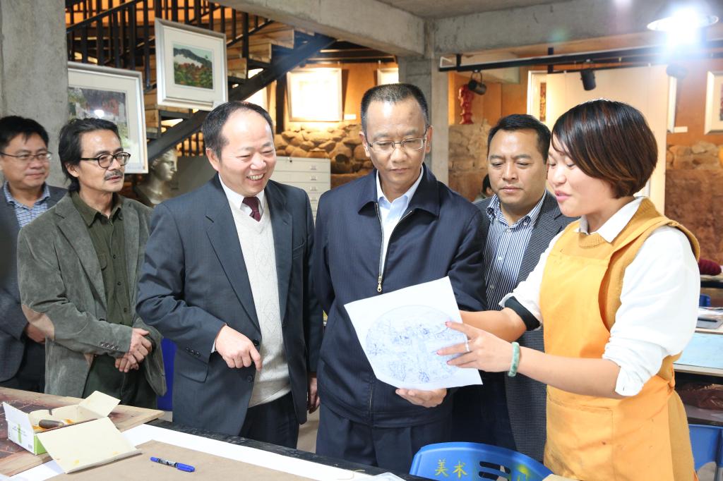 强烈的立体感、丰富的色彩、厚重的文化底蕴……卫星在一幅幅绝版木刻精品佳作面前驻足观看,并不时与艺术家们交流。他说,普洱是中国绝版木刻版画艺术的摇篮,普洱绝版木刻根植本土和传统,积极融进世界和当代艺术元素,形成了独具特色的流派与风格,是普洱一张靓丽的文化名片。希望共同努力,发挥优势,把绝版木刻教学学生创业创新实践基地办好、办出特色。通过绝版木刻的艺术形式,把鲜明厚重的普洱茶文化、历史悠久的茶马古道文化、多姿多彩的民族文化和人与自然和谐的生态文化展示给世人,为弘扬“包容开放、团结拼搏”普洱精神,打造“天赐普洱•世界茶源”城市品牌,促进文化旅游融合发展作出积极贡献。