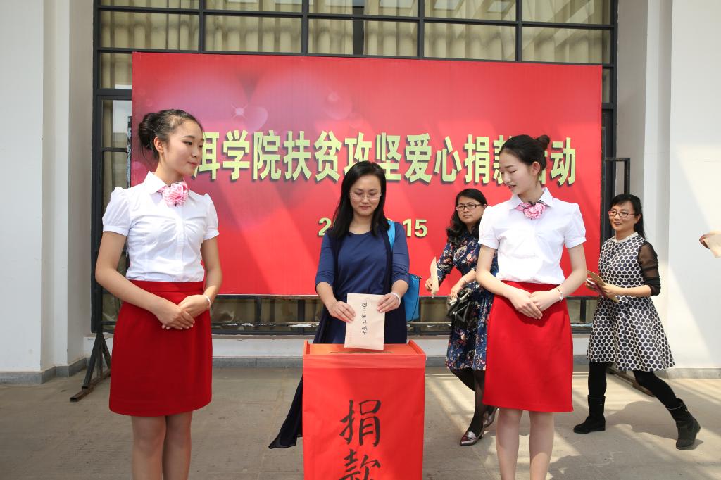 3月15日下午3时,学校在图书馆门口举行“脱贫攻坚献爱心”捐款活动,为“挂包帮”贫困户献爱心。