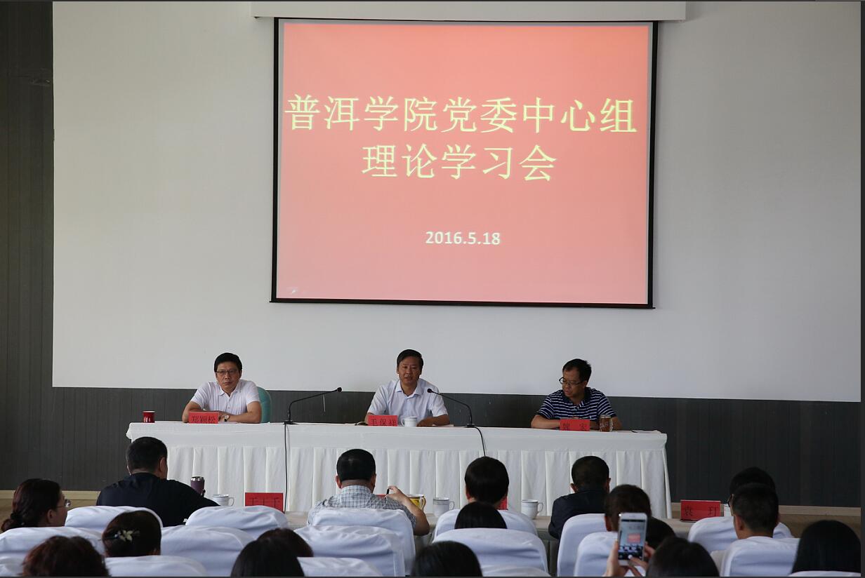 5月18日下午,学校在行政楼召开www.2396196827.com 2016年春季学期第二次党委中心组理论学习会议,学校领导出席会议,省委第三巡视组组长周业勇、巡视组成员袁玎到会指导,学校副处级以上领导干部90余人参加会议。会议由党委书记毛保祥主持。