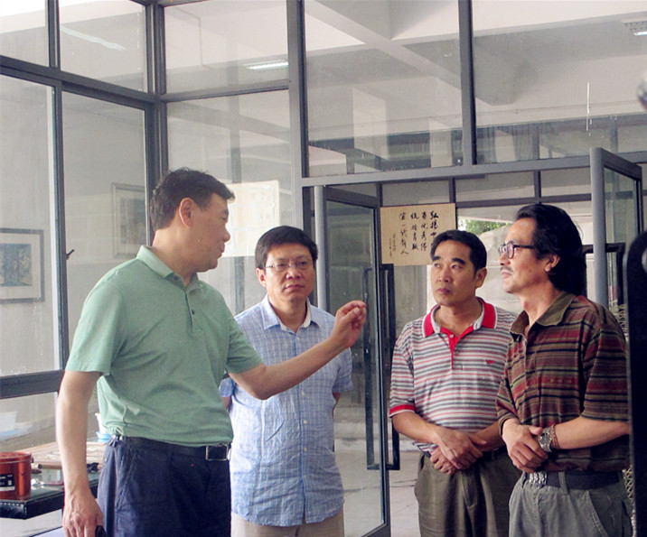 舒建新副市长一行先后参观了美术馆、普洱绝版木刻精品陈列馆、版画工作室等主要场馆。在认真欣赏我校师生绝版木刻作品的同时,他还详细询问了我校艺术学院专业设置、普洱绝版木刻技法教学、美术专业学生就业、那柯里绝版木刻教学学生创业创新实践基地建设等的具体情况。他指出,普洱绝版木刻已经成为普洱文化的一张靓丽名片,希望我校做好普洱绝版木刻艺术巡展工作,并建议:一是要认真挑选出师生具有代表性、文化性、创造性的精品绝版木刻作品进行馆藏巡展;二是要多渠道思考普洱绝版木刻巡展馆藏作品的宣传方式和手段,进一步做好馆藏作品的归档整理;三是要多加强与普洱市文化体育局的交流、沟通,为全力打造全市“天赐普洱•世界茶源”城市品牌做出更大贡献。
