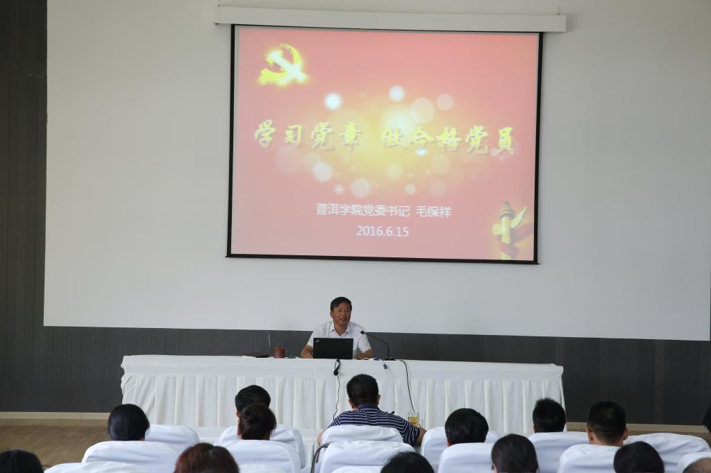 按照中央、省委关于“两学一做”学习教育的相关要求和学校“两学一做”学习教育实施方案的部署, 6月15日下午,党委书记毛保祥在行政楼会议室为学校副科级以上党员领导干部、马克思主义学院教师做了题为《学习党章 做合格党员》专题党课辅导。毛保祥书记围绕为什么要学习党章,如何学习党章,学习党章、做合格党员三个方面全面阐释了学习党章的重要性。