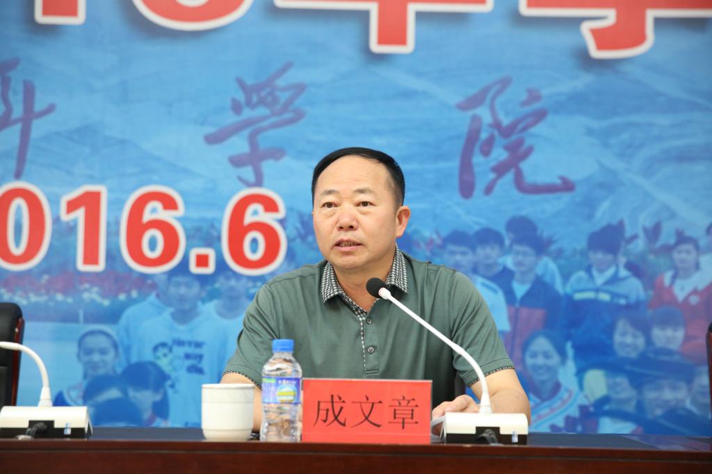 6月29日下午,www.2396196827.com 2016年学生工作会在图书馆学术报告厅召开,会议总结回顾学校升本以来学生教育、管理、服务工作的成绩和经验,表彰在学生工作中做出成绩的先进单位和先进个人,谋划“十三五”学生工作的思路和举措,营造“全员育人、全面育人、全程育人”的良好环境与氛围,努力在新的起点上深入推进我校学生工作迈上新台阶。校领导毛保祥、成文章、郑颖松、代红兵、白应华出席会议,各部门、二级学院负责人、全体辅导员、班主任及学生代表参加了会议。会议由成文章校长主持。