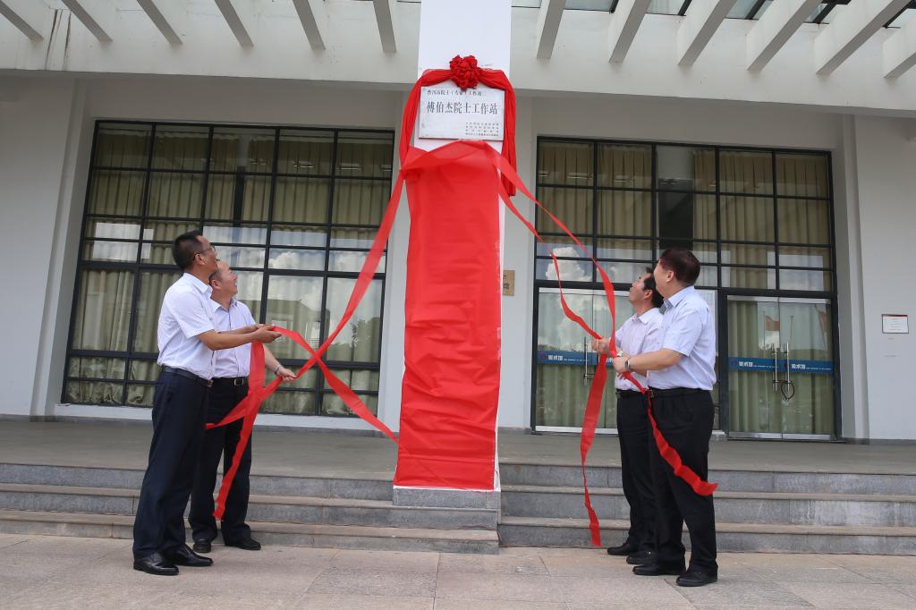 普洱市委书记卫星、中国科学院昆明分院周杰书记、傅伯杰院士、成文章校长为傅伯杰院士工作站揭牌。
