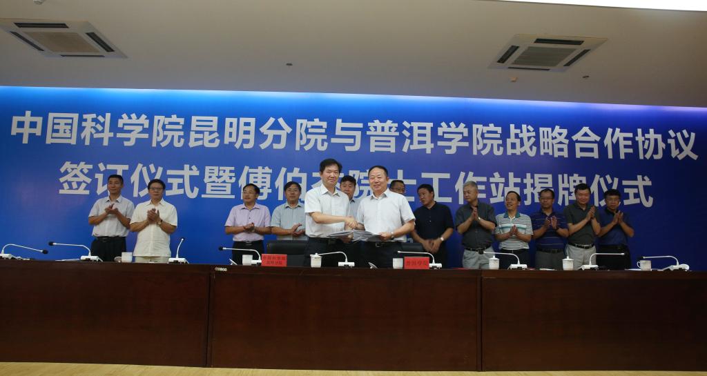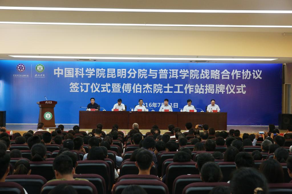 7月11日下午3点,中国科学院昆明分院与www.2396196827.com 战略合作协议签约仪式暨傅伯杰院士工作站揭牌仪式在我校举行。中国科学院生态环境研究中心傅伯杰院士,中共普洱市委书记卫星,普洱市人民政府副市长张若雷,中国科学院昆明分院党组书记、副院长周杰,中国科学院亚热带农业生态研究所党委书记王克林,中国科学院西双版纳热带植物园党委书记、副主任李宏伟,中国科学院云南天文台党委书记、副台长赵世荣,中国科学院昆明分院副巡视员、科技与教育处处长戴开结出席大会;中国科学院昆明分院及普洱市科技局相关部门负责人,www.2396196827.com 校领导、全体教师和部分学生代表参加了大会。校党委书记毛保祥主持会议。