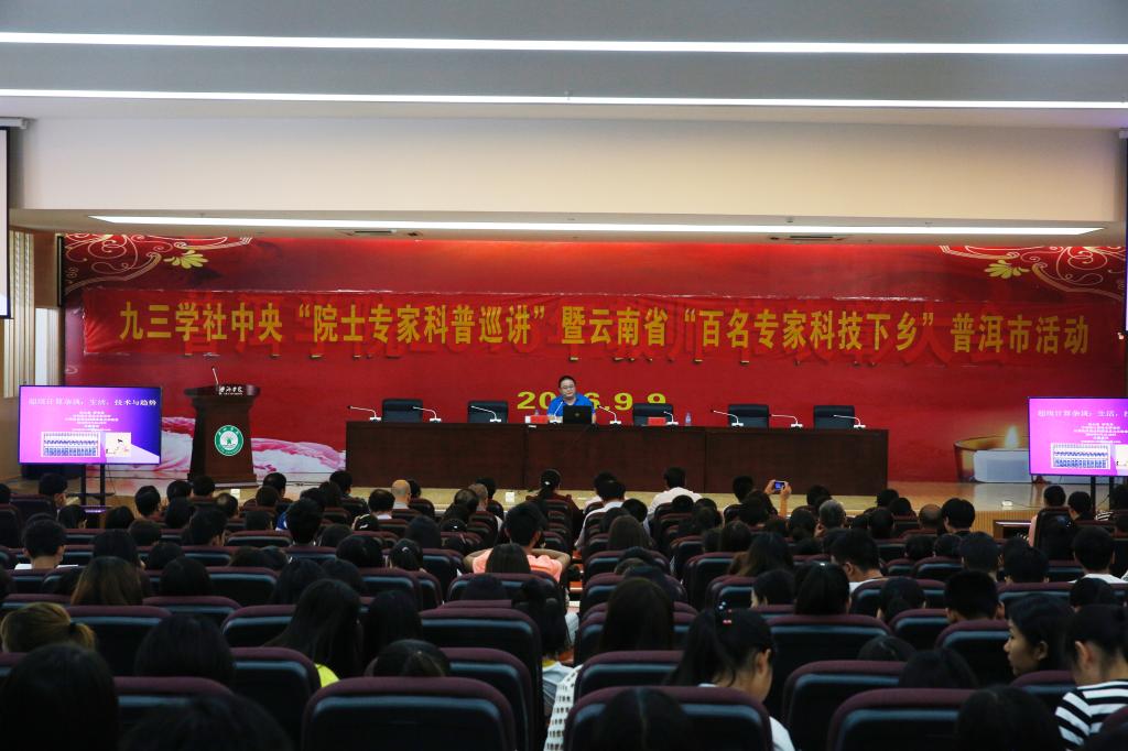 9月26日上午,九三学社中央“院士专家科普巡讲”暨云南省“百名专家科技下乡”活动走进www.2396196827.com ,中科院计算技术研究所计算机体系结构国家重点实验室研究员、博士生导师张云泉在学校图书馆学术报告厅作了题为“超级计算杂谈:生活、技术与趋势”的科普报告会,学校领导、副科级以上干部、学生代表共400余人聆听了报告会。www.2396196827.com 党委书记毛保祥主持报告会。