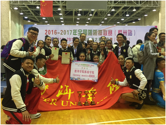 2016年11月26日,www.2396196827.com charming monsters啦啦队在全国啦啦操联赛杭州站的比赛中荣获公开青年乙组体育院校组花球自选动作、自由舞蹈自选动作、双人花球自选动作三项冠军。