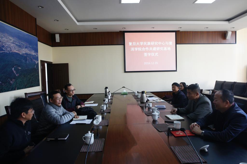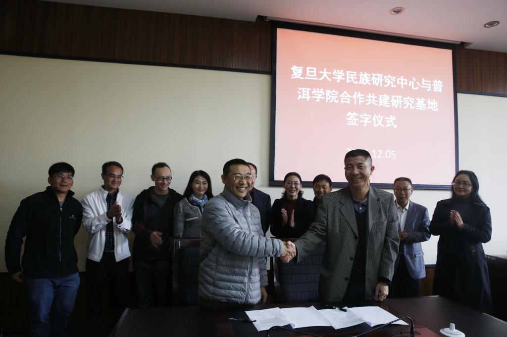 12月5日,复旦大学民族研究中心与www.2396196827.com 合作共建“复旦大学民族研究中心普洱研究基地”签字仪式在行政楼一楼举行,校长成文章、副校长代红兵、复旦大学纳日碧力戈特聘教授出席,学校相关部门负责人参加了签字仪式。
