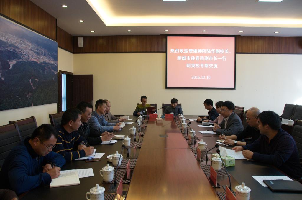 12月10日,楚雄师范学院陆华副校长、楚雄市副市长孙春荣一行到我校考察交流,我校白应华副校长接待了陆华副校长一行。