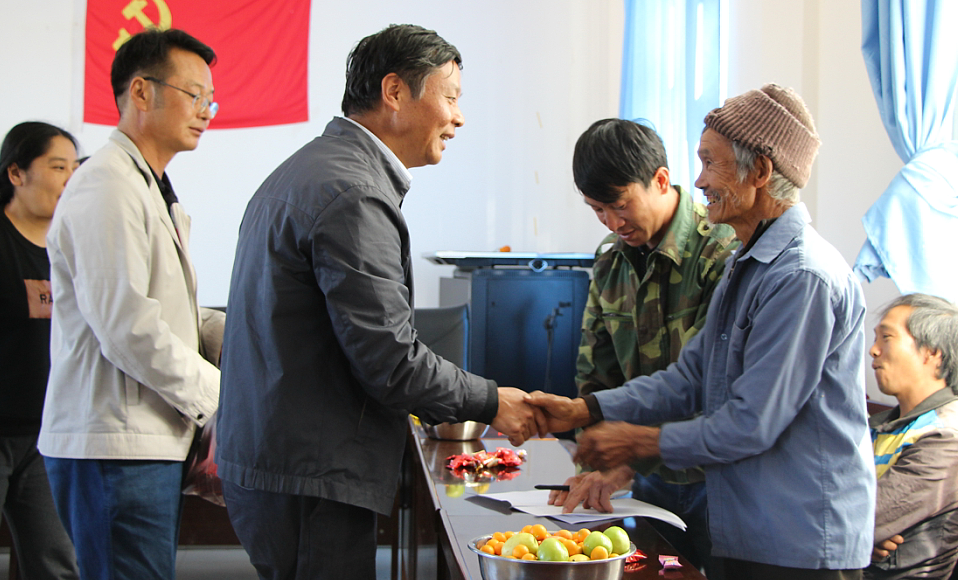 会上还为50户贫困户发放了节日慰问金;会后,校领导一行分别到帮过、油榨房等小组贫困户家进行走访慰问。