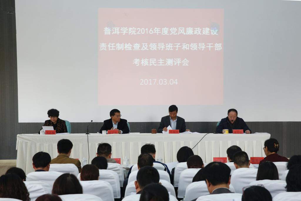 会议对学校2016年度党政领导班子落实党风廉政建设责任制和党政领导干部述责述廉,以及学校领导班子、班子成员进行民主测评;并对学校2016年干部选拔任用工作情况及新提拔、调整处级干部进行评议。