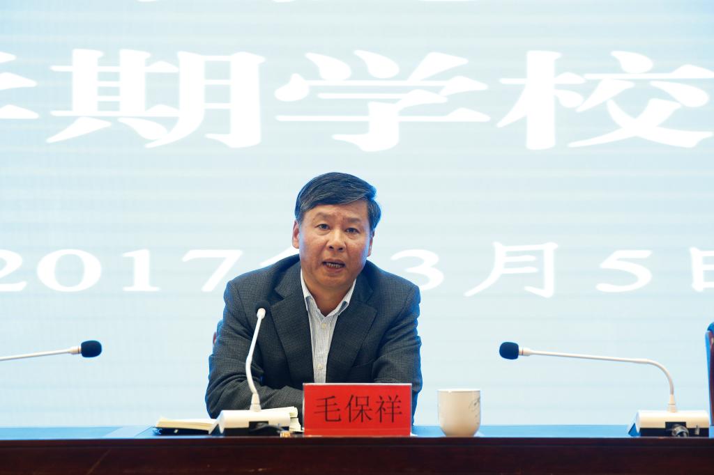 3月5日下午,学校在图书馆学术报告厅召开2017年春季学期工作会,全校教职工参加会议。大会由党委书记毛保祥主持。