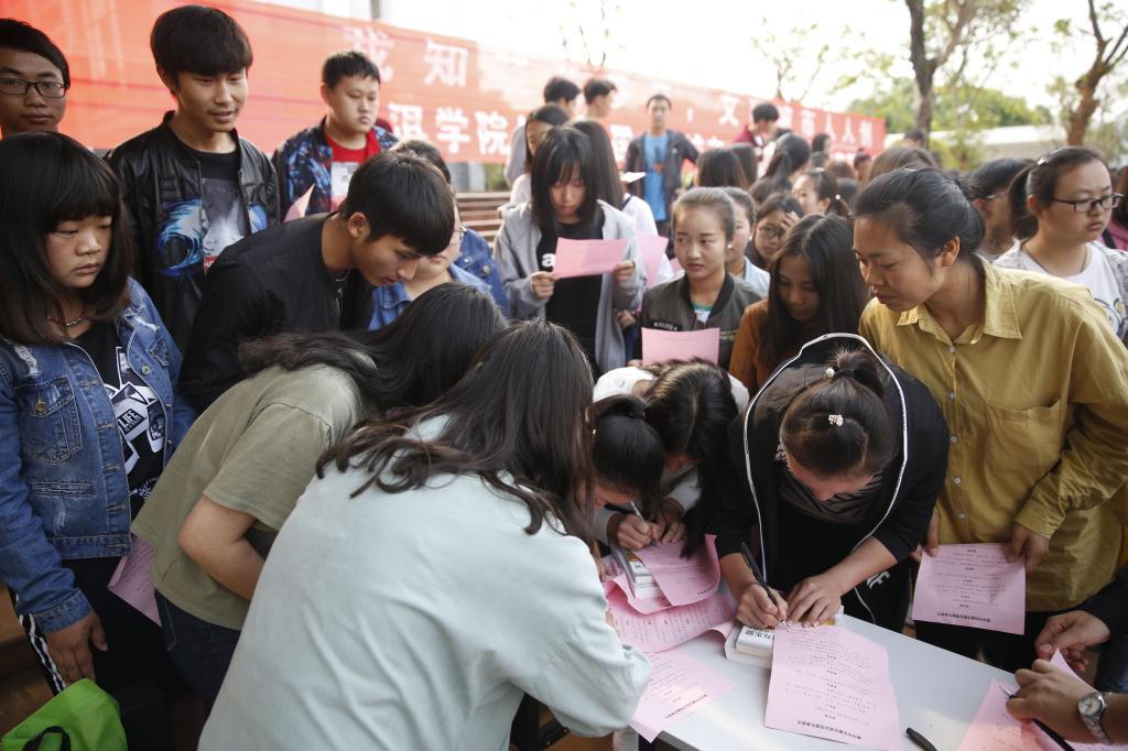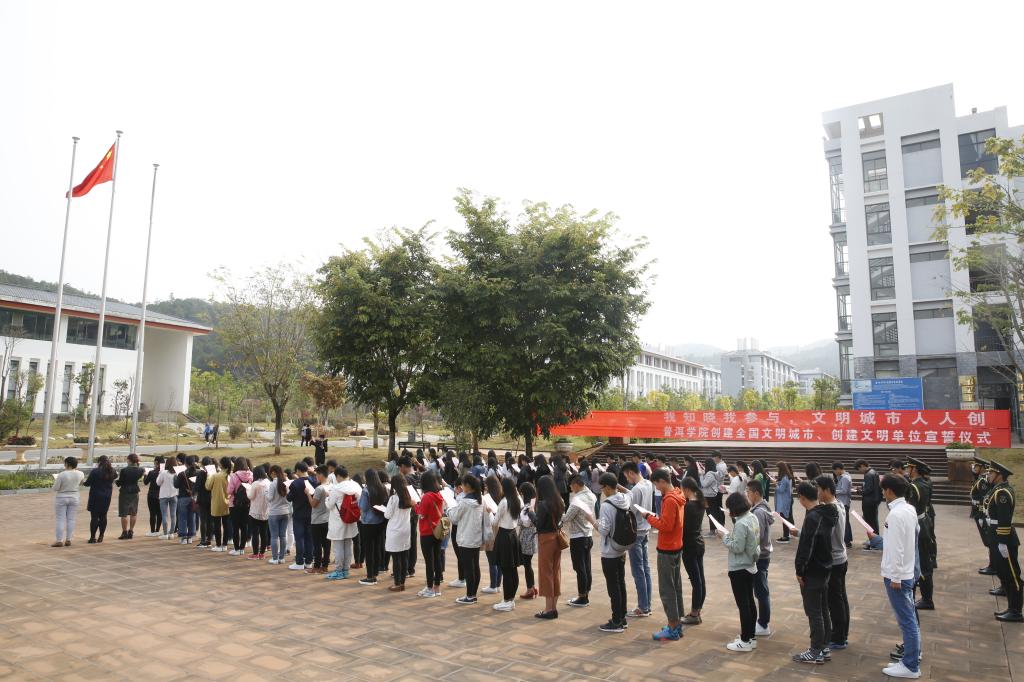 宣誓结束后,广大师生在“普洱市创建全国文明城市承诺书”签上自己的名字。