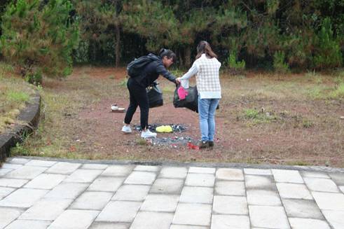 为烈士园清扫垃圾