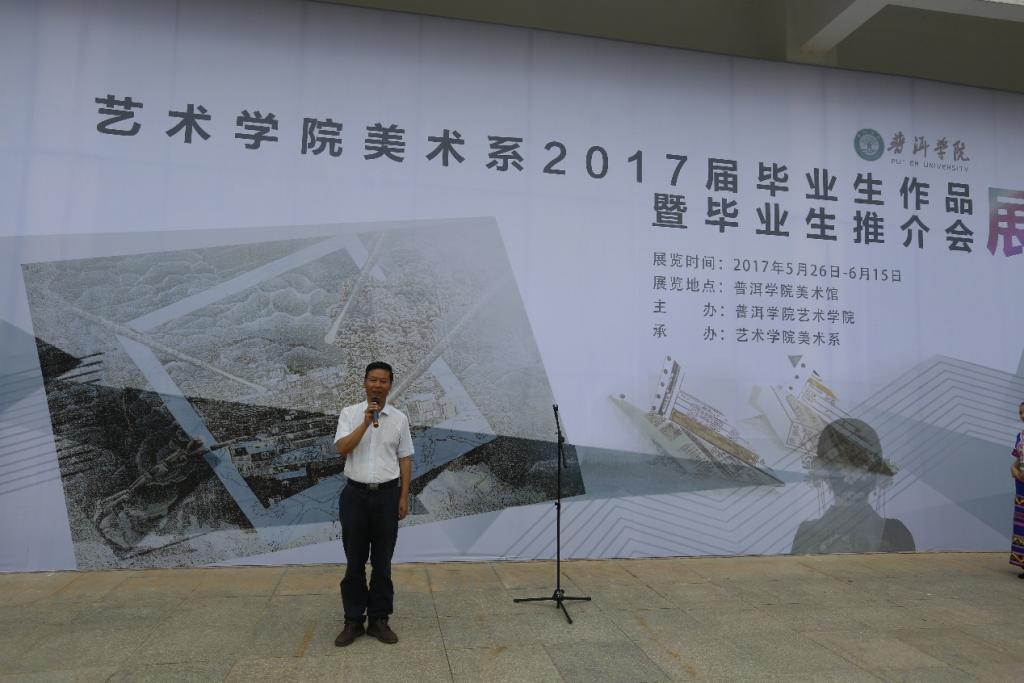 5月26日上午,我校艺术学院美术系2017届毕业生作品展暨毕业生推介会在图书馆举行,党委书记毛保祥出席开幕式并宣布美术系2017届毕业生作品展暨毕业生推介会开幕,校长成文章、党委副书记郑颖松、副校长白应华出席开幕式并为获奖同学颁发荣誉证书。学校相关部门负责人、艺术学院师生参加了开幕式。