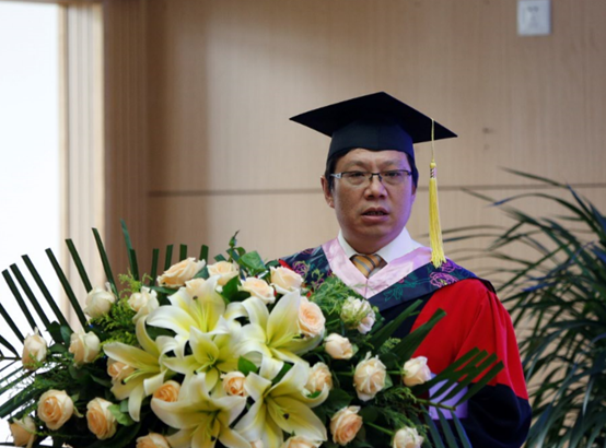 典礼在庄严的国歌声中拉开序幕。成文章校长在毕业典礼上致辞。成文章校长代表全校师生员工向全体毕业生致以最热烈的祝贺,向为同学们健康成长付出心血和汗水的老师们表示诚挚的感谢,向含辛茹苦培育同学们的家长,以及关心、支持同学们完成学业的社会各界人士表示崇高的敬意。成校长饱含深情地说道:“当看到大家在校园里挽着同学、簇拥着老师合影拍照的姿态,感受到了同学们对母校和老师的深深之情,感受到了同学们的成长和成熟,更感受到了同学们将要放飞理想的激情和对成就事业的渴望。此刻,我是欣慰的,欣慰于大家学业有成、成为有益于社会的有用之材,欣慰于大学生活让你们学会了做人做事,懂得了珍惜和付出,拥有了对他人及社会的爱心,成为了有理想、有激情、有责任感的青年。母校为你们的成长、成熟、成材感到由衷高兴。”