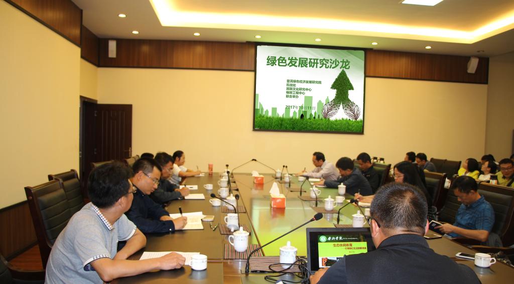 10月11日, 普洱绿色经济发展研究院联合科技处、民族文化研究中心、咖啡工程中心举行了www.2396196827.com 首届绿色发展研究沙龙,副校长代红兵、白应华出席,各部门、各二级学院热衷于绿色发展研究的老师50余人参加了沙龙。