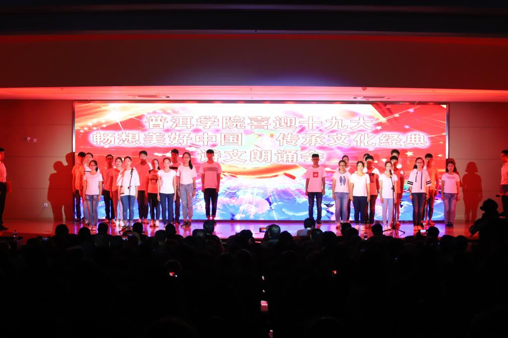 盛世迎盛会,伟业耀千秋,万众瞩目的中国共产党第十九次全国代表大会在北京隆重召开。为庆祝党的这一历史性时刻,抒发对党和国家的无限热爱、对民族复兴的美好憧憬。10月18日晚,学校在图书馆学术报告厅举办“喜迎十九大畅想美好中国 传承经典文化”诗文朗诵会。校领导毛保祥、成文章、郑颖松、魏宏、代红兵、白应华出席朗诵会,师生代表400余人参加朗诵会。