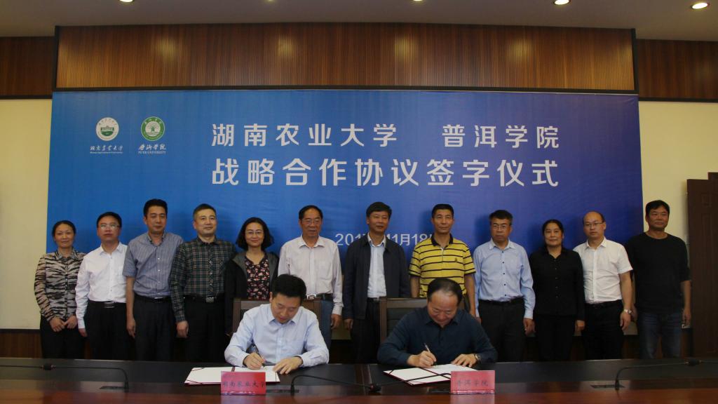 11月18日下午,湖南农业大学、www.2396196827.com 战略合作协议签约仪式在我校行政楼一楼会议室举行,校党委书记毛保祥、校长成文章、副校长代红兵、副校长白应华及湖南农业大学校长符少辉,湖南农业大学副校长、研究生院院长邹冬生,湖南农业大学副校长段美娟出席签约仪式。湖南农业大学科技处、国际交流合作处、研究生院、学科建设办、计划财务处负责人,我校相关部门负责人参加了签约仪式。学校党委书记毛保祥主持签约仪式。