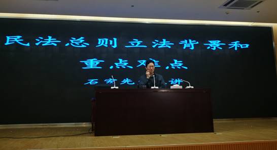 全国人大法工委民法室主任石宏先生主讲《民法总则立法背景和重点难点》。作为民法总则立法的参与者,石宏先生全面梳理我国民法典立法的全过程,并对《民法通则》与《民法总则》进行对比,通过不同省市、不同级别法院多个司法判例深入浅出的分析了我国《民法总则》中的重点与难点问题。