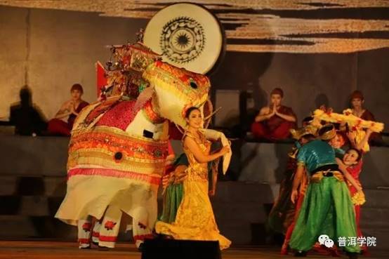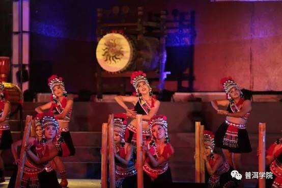 演出分《神鼓象脚鼓摆舞》《恋歌竹筒牛皮鼓舞》《傣族采花象脚鼓》《石龙鼓舞大帮腔羊皮舞》《祭鼓牛头甩发》五个篇章,师生们身着绚丽多彩的民族服饰,用欢快娴熟的舞步,演绎着拉祜族、哈尼族、傣族、彝族、佤族五个普洱少数民族的无穷魅力和浓郁的民族风情,一次次地赢得了全场观众热烈的掌声。