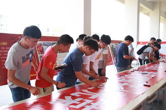 启动仪式上,学校领导与各二级学院党总支书记签订征兵目标责任书;会议结束后,与会学生进行签名,并参加现场宣传报名活动。