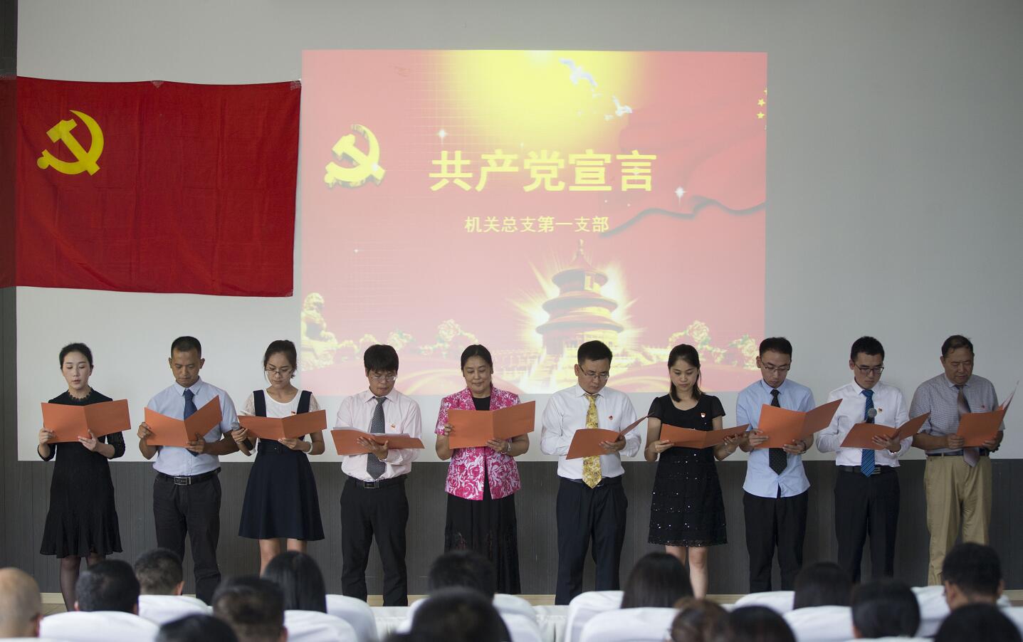 随后,举行庆祝“七•一”诗文朗诵会。机关党总支十个党支部结合学习习近平新时代中国特色社会主义思想和十九大精神,从重温《共产党宣言》,到激发《回延安》历史记忆,从传承《红船,从南湖起航》精神,到祝福《歌唱七月——先给党的生日》等,党员们激情朗诵,提振精神,坚定信念,讴歌党的丰功伟绩,共同祝福共产党成立97周年。