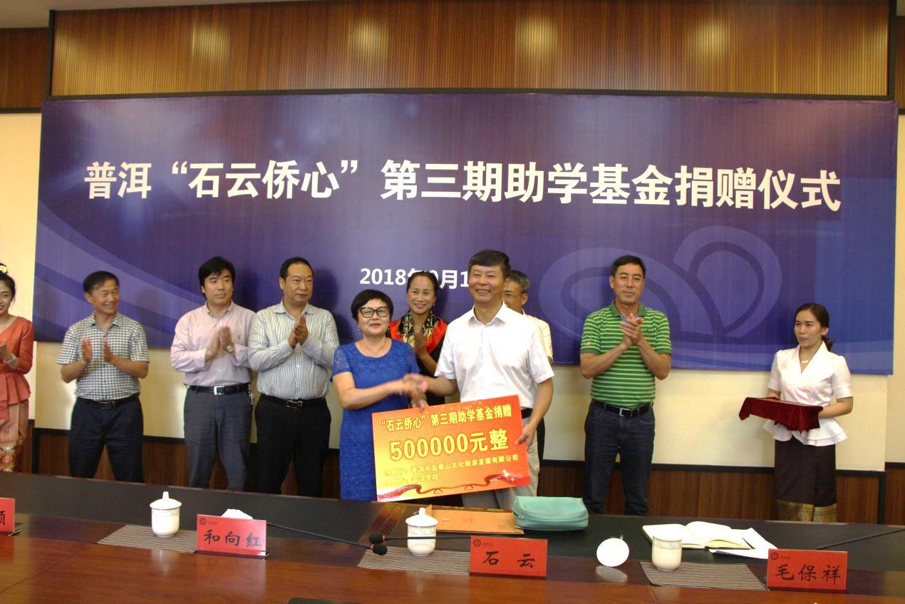 捐赠仪式上,普洱蓝眉山文化旅游发展有限公司董事长石云表示传承和弘扬中华文化,倡导重教助学的美德是责任和担当,“石云侨心”助学基金主要用于资助东南亚留学生,让他们了解学习中华文化,增进与中国特别是云南及普洱市的沟通,为国家及地区和平友谊、经贸交流打下良好基础。