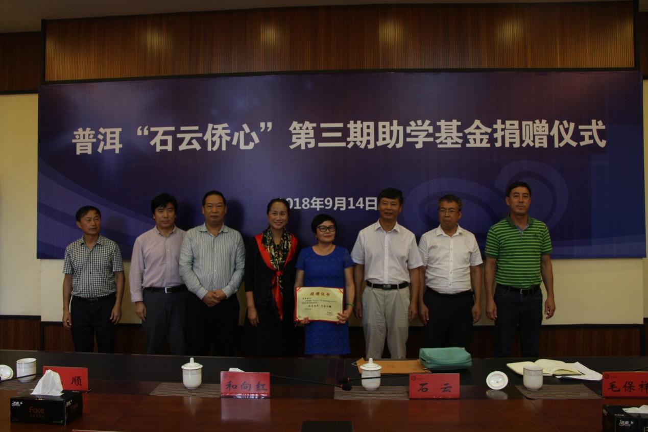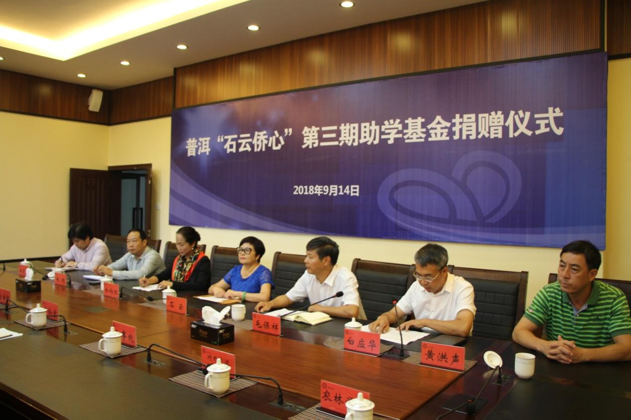 9月14日,普洱“石云侨心”第三期助学基金捐赠仪式在我校举行,省侨联、市侨办和www.2396196827.com 相关部门负责人参加捐赠仪式。仪式由www.2396196827.com 副校长白应华主持。